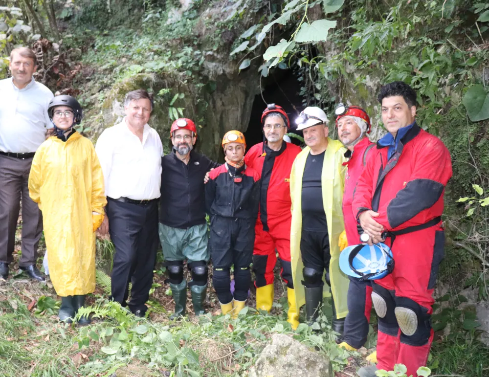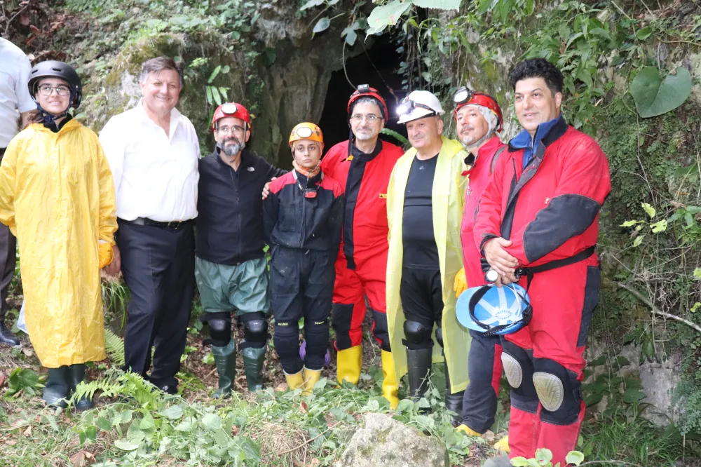 Ünye Belediye Başkanı Hüseyin Tavlı ve ASPEG ekibi, imzaların ardından Yazkonağı Mağarası’nda araştırma gezisi gerçekleştirdi.