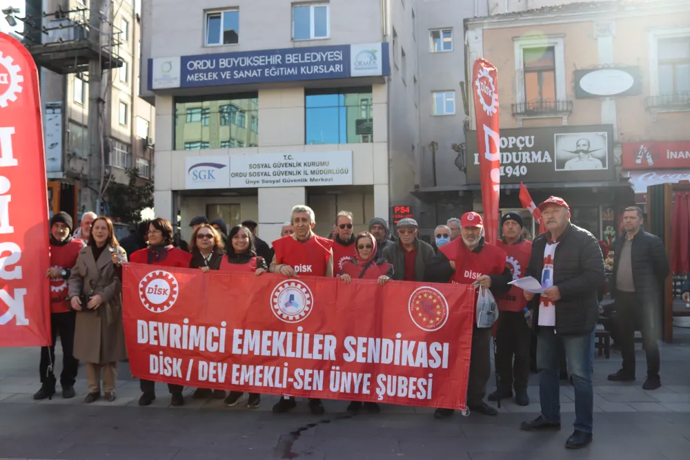 DİSK Emekli-Sen Ünye Şubesi adına Ünye Döner Çeşme Meydanı’nda basın açıklaması yapan sendikanın Basın Sözcüsü İsmail Bulat, 2026 yılı bütçesine tepki gösterdi.