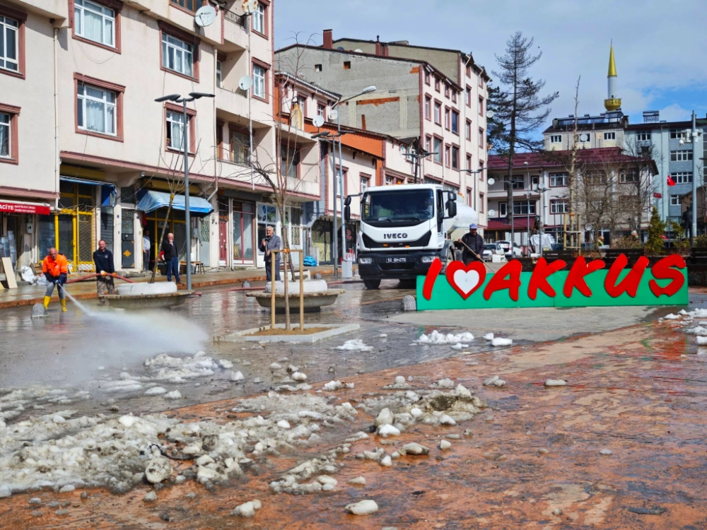 "Akkuş'umuzda bahar temizliği başladı. İlçemizde uzun süredir etkili olan kar yağışının ardından ekiplerimiz, daha temiz bir Akkuş için kent merkezindeki cadde ve sokaklarımızda yıkama çalışmalarına aralıksız devam ediyor. Hemşehrilerimizin güne pırıl pırıl bir ilçede uyanması için tüm imkanlarımızı seferber ediyoruz."