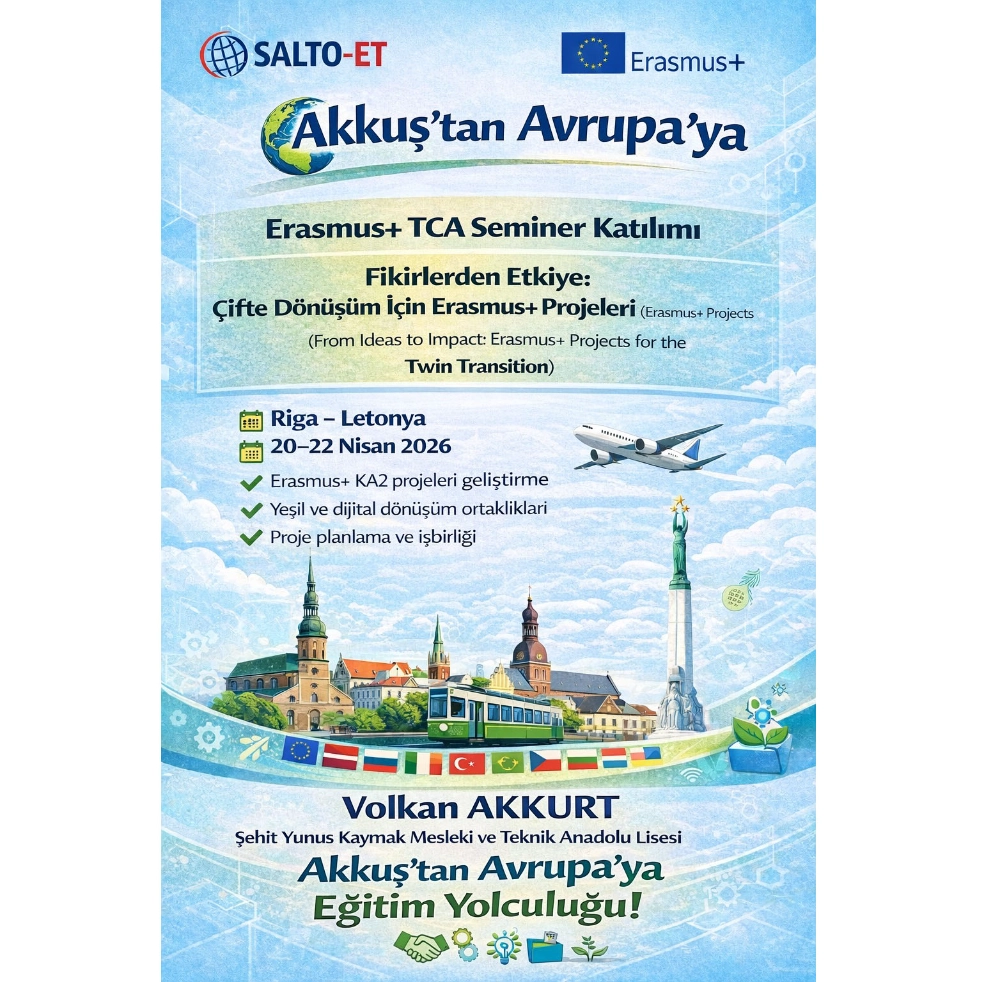 Letonya’nın başkenti Riga’da 20-22 Nisan 2026 tarihlerinde gerçekleştirilecek olan seminerde; Avrupa genelinden gelen eğitimcilerle birlikte Erasmus+ KA2 projelerinin geliştirilmesi, yeşil ve dijital dönüşüm ortaklıkları ile proje planlama süreçleri ele alınacak.