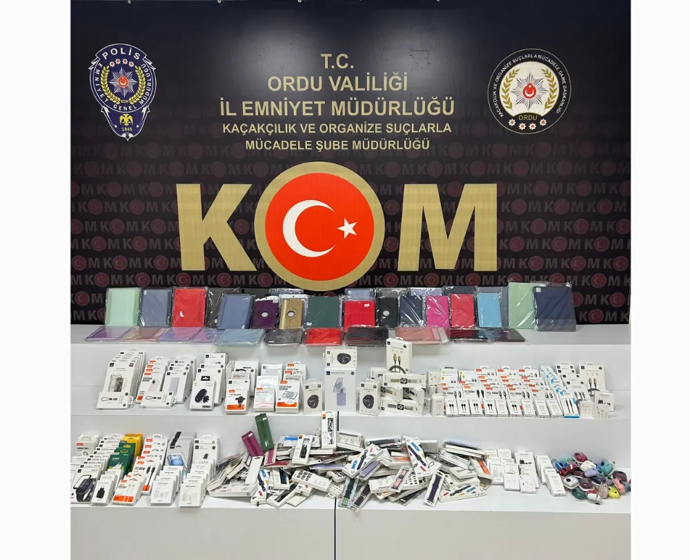 Aramada; 1 adet kaçak telefon, 130 adet saat kordonu, 45 adet tablet kılıfı, 40 adet akıllı saat, 40 adet powerbank, 120 adet araç telefon tutucu ve 50 adet telefon şarj kablo ele geçirildi.
