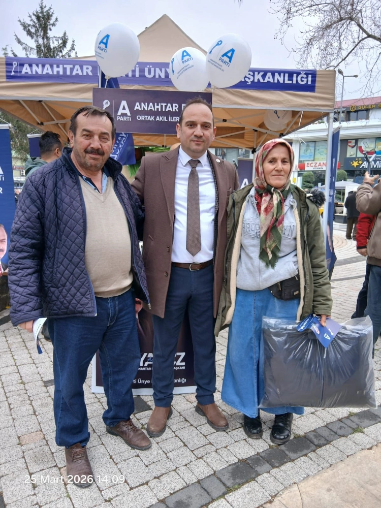 Anahtar Parti Ünye İlçe Başkanlığı, saha çalışmaları kapsamında ilçenin yoğun noktalarından biri olan Mithat Kısacıkoğlu Parkı’nda tanıtım standı açtı.