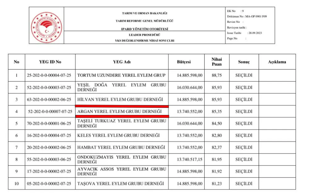 “Argan Yerel Eylem Grubu Derneği olarak IPARD II LEADER yaklaşımı kapsamında hayata geçirdiğimiz projelerimiz ve IPARD III LEADER Programı çerçevesinde özveriyle hazırladığımız 2025-2030 Yerel Kalkınma Stratejimizin yüksek oranda başarılı bulunması sonucunda, Türkiye genelinde müracaat eden 156 YEG içerisinde 4’üncü YEG seçilmiş bulunmaktayız.”