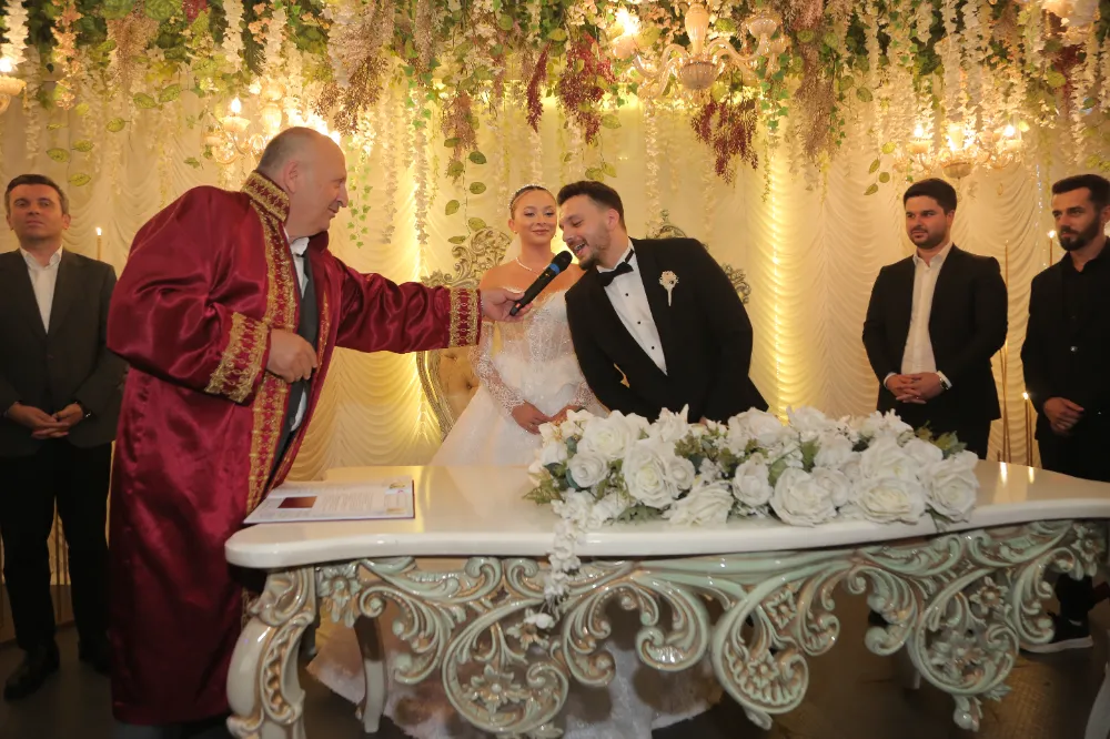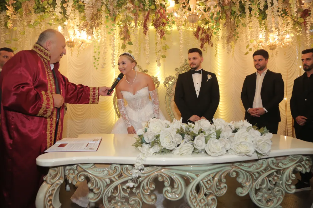 Çiftin pasta kesiminin ardından düğüne katılan misafirler müzik eşliğinde gece geç saatlere kadar eğlendi.