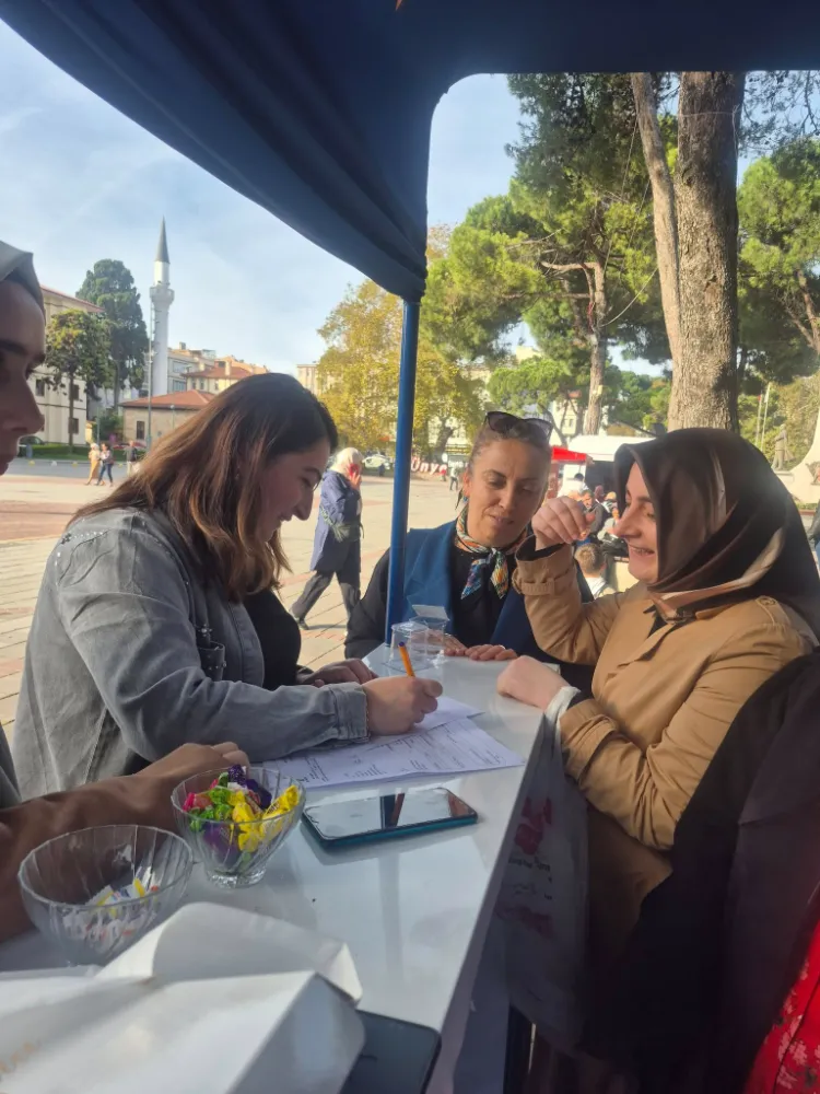 Ben mümkün olduğunca %90 diyeyim etkinliklere kendim katılıyorum. Bazen sağlık, bazen iş nedeniyle katılamadığımda, Başkan Yardımcımız Av. Dilara Çat Çevik yerime vekalet ediyor, ya da diğer arkadaşlarımız var. Teşkilat ve birim başkanlarımız var. Onlar vekalet ediyor. Evlere çok rahat gidiyoruz. Hiçbir problemimiz olmuyor. Ben mesela cumartesi günümü buna ayırıyorum. Arkadaşlarımızla beraber evler belirlenmiş oluyor. Köylere, arka mahallere ve şehir merkezinde her yere gidiyorum.”