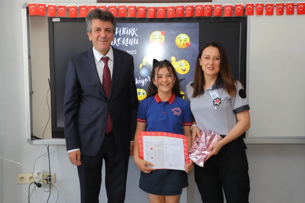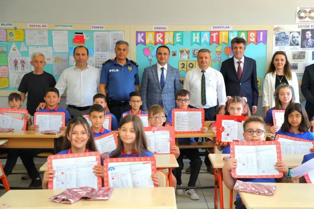 Karne dağıtım töreninde sınıfları tek tek gezen protokol üyeleri, öğrencilere başarı dileklerini iletti ve onları tebrik etti. Öğrencilerin mutluluğu ve heyecanı törene katılanlara duygu dolu anlar yaşattı.