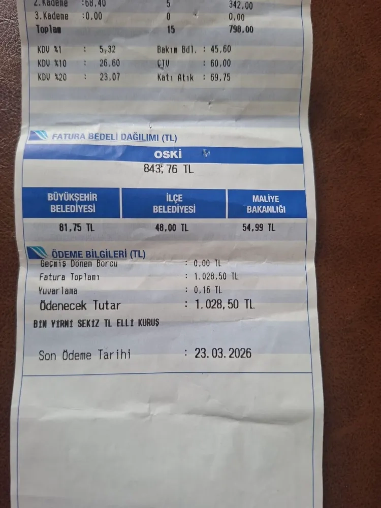 "Bugün Ordu'da suyun 45,6 TL olan metreküp fiyatı, vergiler ve diğer kalemlerle birlikte 65 TL'ye kadar çıkmaktadır. Bu fiyatlandırmayla iki kişilik bir ailenin aylık su faturası 1.000 TL bandına yaklaşmıştır. OSKİ'ye ait 2 Mart 2026 tarihli bir faturada 8 metreküp su kullanan bir vatandaş 510 TL ödemiştir. Aynı coğrafyada ve iklim şartlarında yaşayan Karadeniz şehirleri arasında Trabzon ve Samsun'dan neden daha fahiş fiyata su kullanıldığı açıklanmamaktadır."