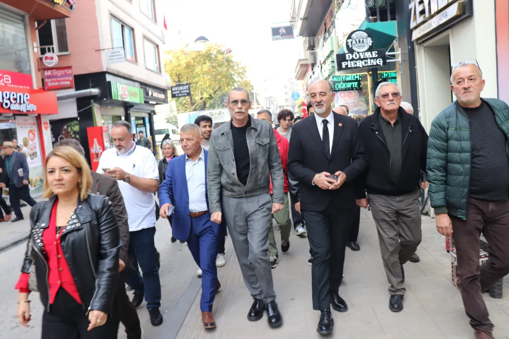 Cumhuriyet Meydanı’nda Atatürk Anıtı önünde partililerle hatıra fotoğrafı çektiren Beşikçioğlu, ardından Kaledere Mahallesi Hükümet Caddesi’ndeki esnaf ve vatandaşlarla bir araya geldi. Vatandaşların yoğun ilgisiyle karşılaşan Beşikçioğlu, sık sık hatıra fotoğrafı çektirdi ve kalabalık nedeniyle ilerlemekte zorlandı.
