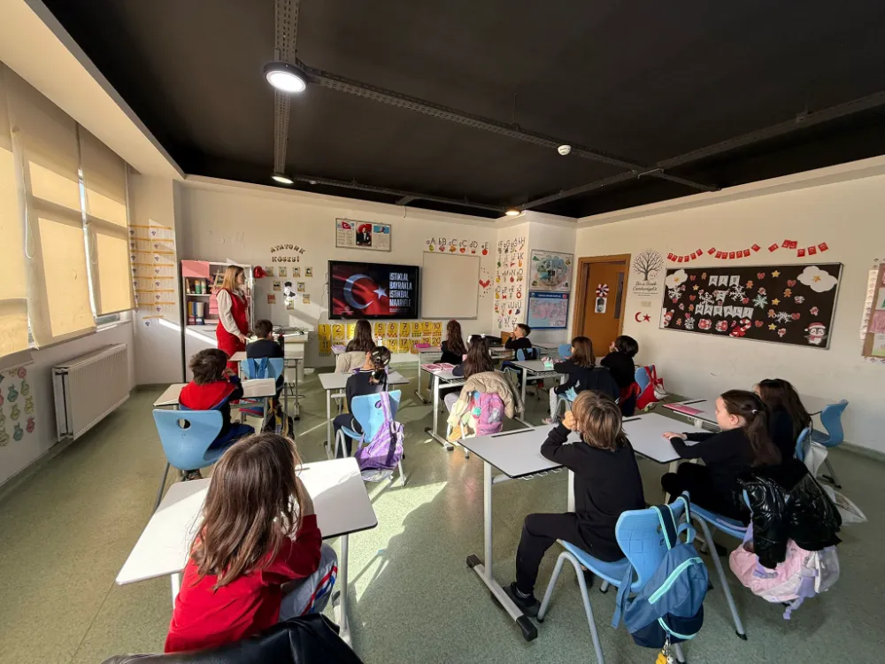 Yeni dönemin ilk dersinde, tüm Türkiye genelinde eş zamanlı olarak gerçekleştirilen “Bayrak Sevgisi” temalı farkındalık çalışması kapsamında öğrencilerin Türk Bayrağı’na yönelik sevgi, saygı ve sorumluluk bilinci pekiştirildi.