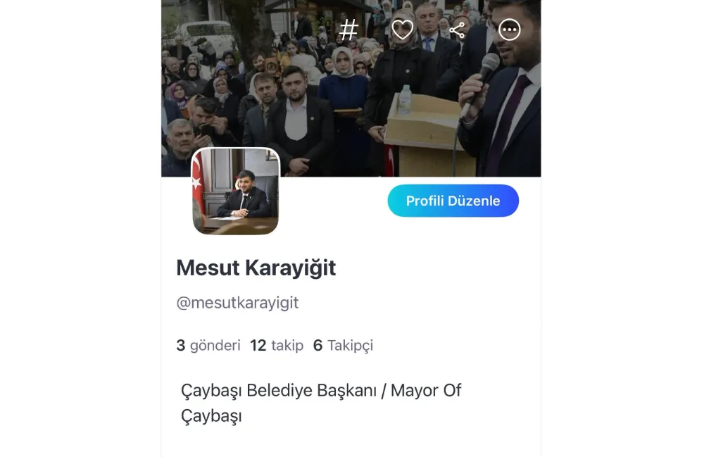 Çaybaşı Belediye Başkanı Mesut Karayiğit, gençlerin teknolojiye olan ilgisini yakından takip ederek dijital dünyadaki yerini aldı. Türkiye'nin yerli ve yenilikçi sosyal medya platformu olan TEKNOFEST Sosyal’e katılan müdürlük, böylece dijital çağın iletişim diline ayak uydurarak öğrencilerle ve eğitim camiasıyla daha hızlı buluşmayı hedefliyor.