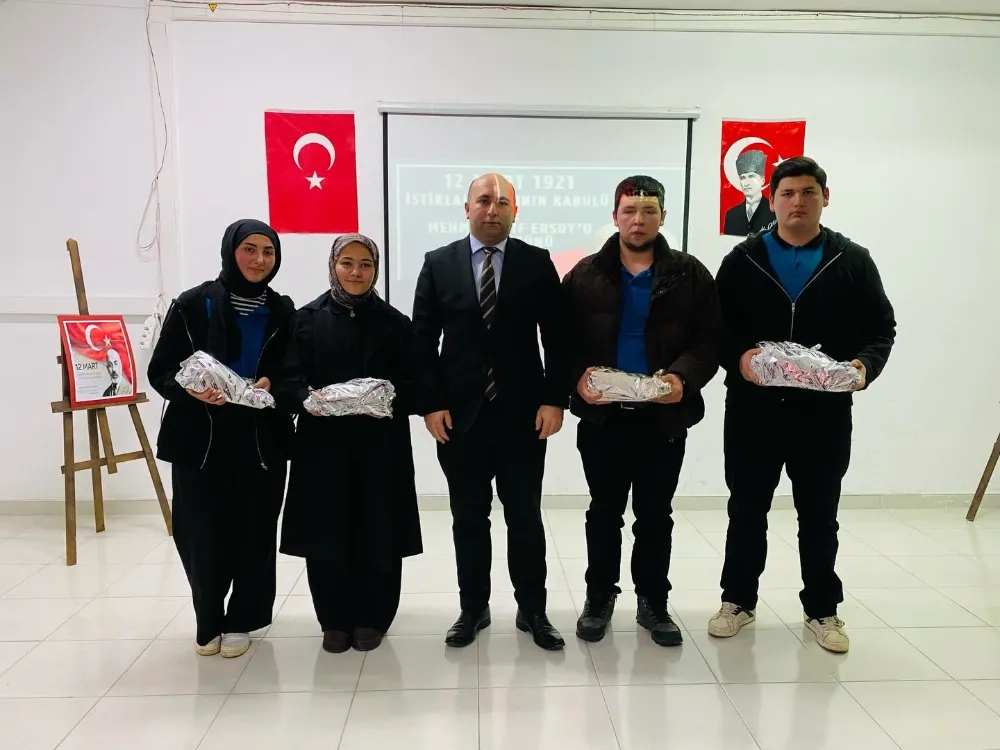 Saygı duruşu ve İstiklal Marşı'nın gür bir sesle okunmasıyla başlayan programda, Milli Şair Mehmet Akif Ersoy'un hayatı ve eserleri üzerine sunumlar gerçekleştirildi.