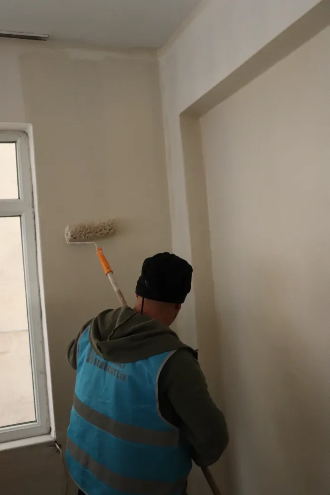 Yükümlüler, evin mutfağını baştan aşağı temizleyerek tüm camları sildi. Boya-badana işlemlerinin yanı sıra bakım ve onarım gerektiren mobilyaların tadilatını tamamlayan ekipler evi baştan sona yeniledi.