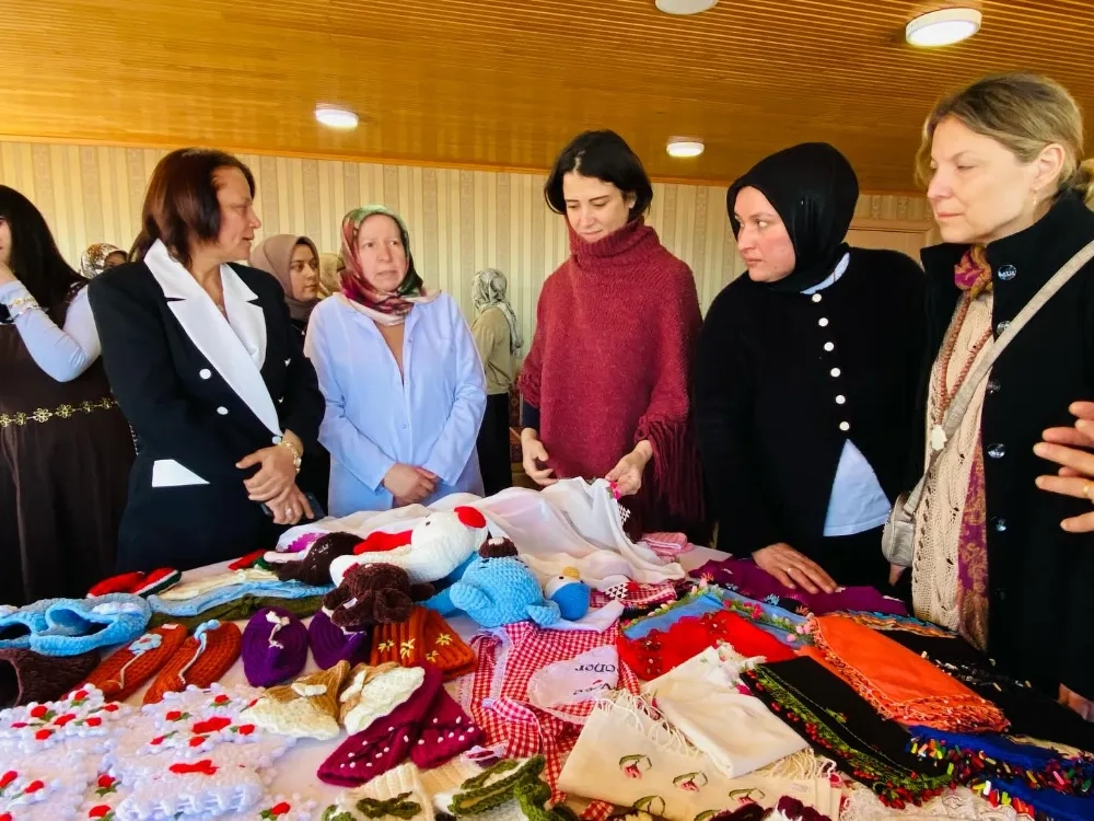 Belediye binasında gerçekleşen kabulün ardından heyet, ilçedeki kadınların ürettiği el emeği ürünlerin sergilendiği alanları gezdi.