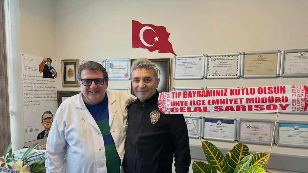 Ünye İlçe Emniyet Müdürü Celal Sarısoy, 14 Mart Tıp Bayramı dolayısıyla Özel Ünye Çakırtepe Hastanesi'ni ziyaret ederek sağlık çalışanlarının bayramını kutladı.