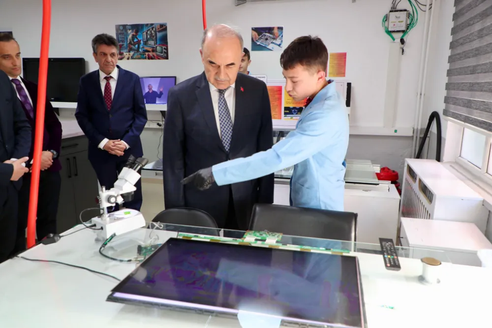 Ardından Elektrik–Elektronik Atölyesi, LED Panel Ünitesi, Robotik Kodlama Atölyesi ve Müzik Sınıfı ziyaret edildi. Öğrencilerin hazırladığı kısa müzik dinletisi ile program sona erdi.