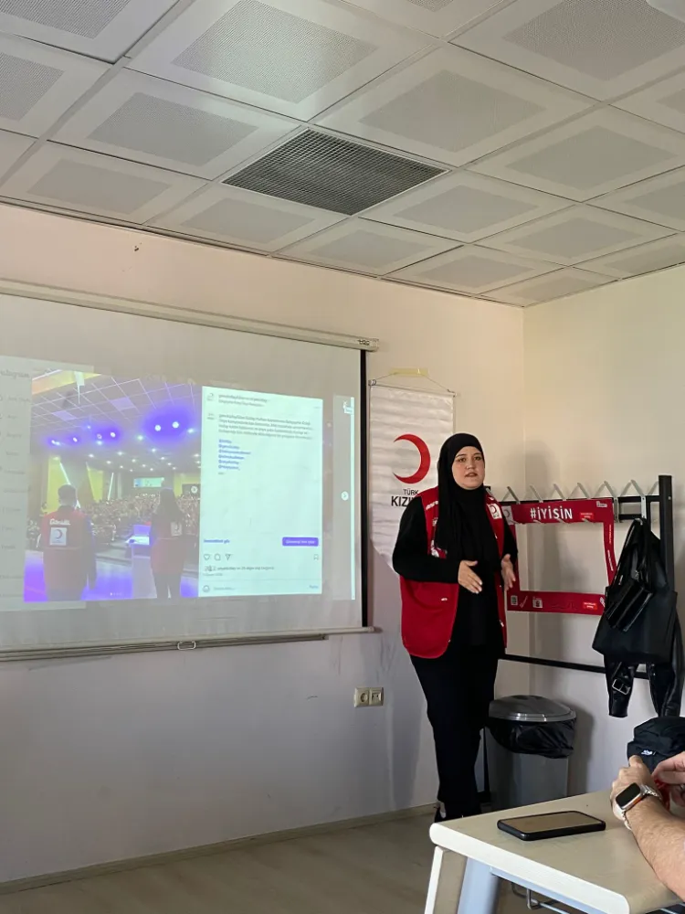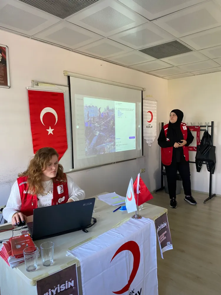 Ordu Üniversitesi Ünye Meslek Yüksekokulu’nda düzenlenen “Kızılay’ın kuruluşu, faaliyet alanları ve gönüllülüğün önemi” konulu eğitimde, Genç Kızılay Ünye teşkilatı üyeleri öğrencilere Kızılay’ın tarihçesi, temel ilkeleri, afet yönetimi, kan bağışı faaliyetleri ve gönüllülüğün topluma kazandırdığı değerler hakkında bilgi verdi.