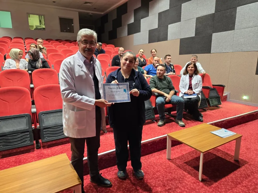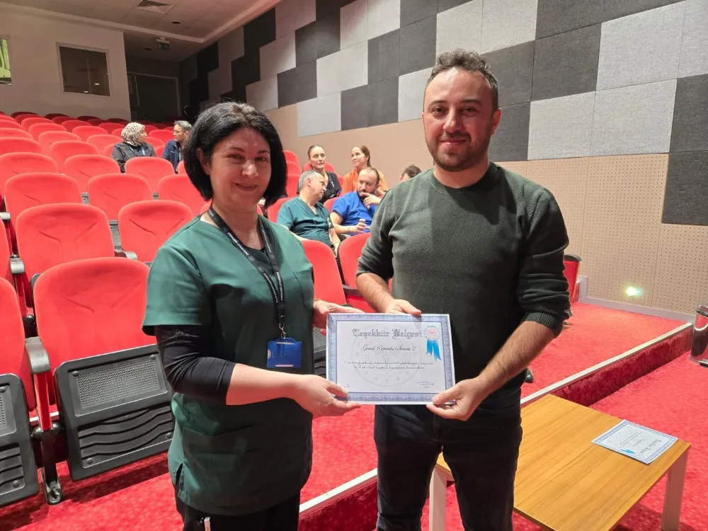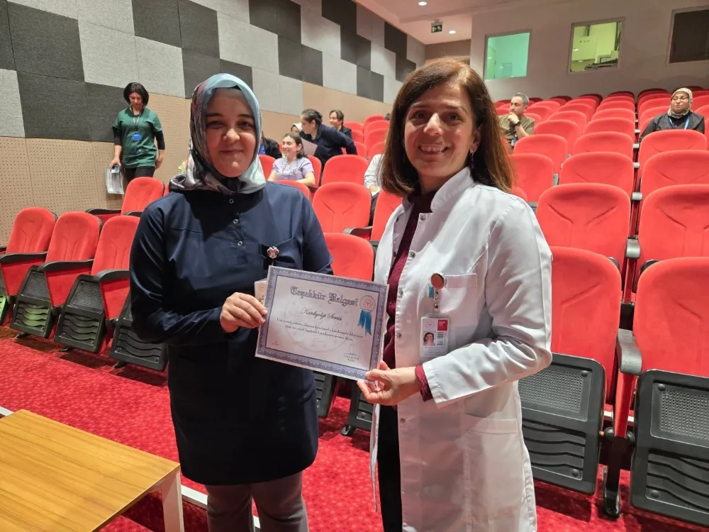 Teşekkür belgeleri, Hastane Başhekimi Yılmaz Dündar, Başhekim Yardımcısı Süleyman Değermenci ve Sağlık Bakım Hizmetleri Müdürü Semiha Güven tarafından personele verildi.