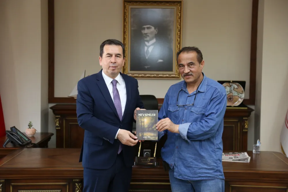 Ziyarette, Ahmet İnce kendi kaleme aldığı “Mevsimler” adlı kitabını Kaymakam Işık’a takdim etti.
