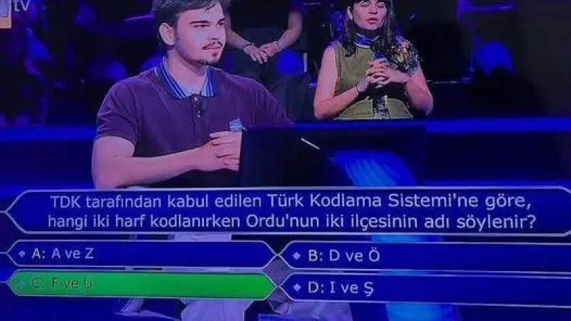 TV ekranlarında Kenan İmirzalioğlu’nun sunumuyla yayınlanan “Kim Milyoner Olmak İster” programında bu kez Ordu damga vurdu. Yarışmacıya yöneltilen ve Ordu’nun iki ilçesini içeren soru şu şekildeydi: