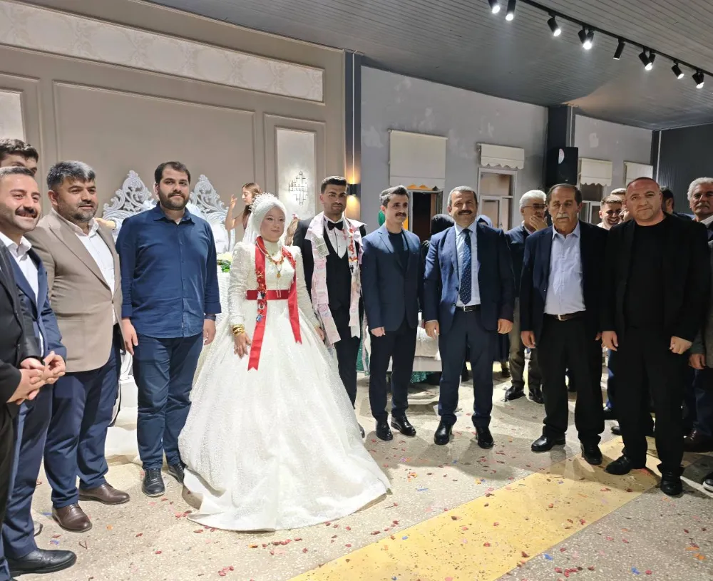 Yoğun katılımla gerçekleşen düğün merasiminde genç çift tebrikleri kabul ederken, davetliler de çiftin bu özel gününde coşkuya ortak oldu.