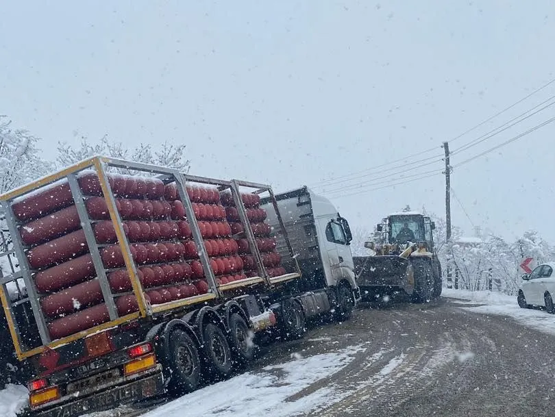 Ordu’nun Korgan ilçesinde taşımalı doğalgaz sistemi kapsamında yakıt sevkiyatı yapan doğalgaz tırı, Fatsa ilçesine bağlı Bacanak Mahallesi’nde olumsuz hava ve yol şartları nedeniyle yolda kaldı.