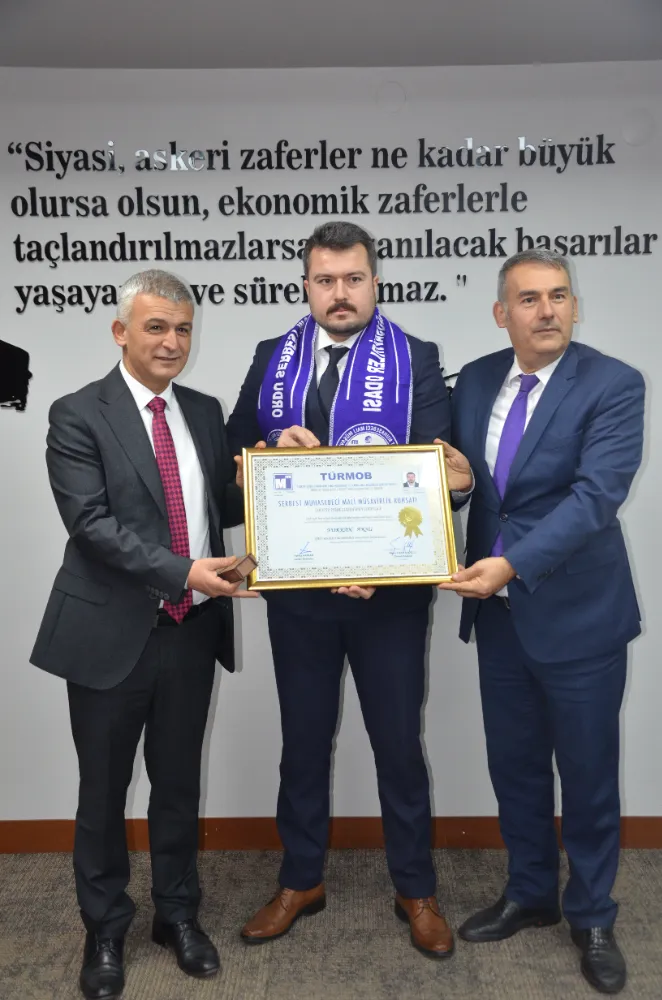 Törenin açış konuşmasında Oda Başkanı M. Ender Sönmez; “Zorlu süreçlerden geçerek zorunlu eğitimden sonra 4 yıl üniversite, staja giriş sınavı, 3 yıl staj, yeterlilik sınavları aşamalarından geçerek mali müşavir unvanına hak kazanan meslektaşlarımızı tebrik ediyor, başarılar diliyorum. Bu süreçte her zaman onlara destek olan anne, baba, eş, kardeş, çocuk olmak üzere tüm aile bireylerinin katkıları da çok değerlidir. Mali müşavirlik unvanını elde etme yolunda hem mesleki gelişimlerini sağlamak, hem de sınavlara hazırlanmak için büyük fedakarlıklarda bulunarak saygın, değerli bir mesleki unvana sahip oldular. Biz Ordu Mali Müşavirler odası olarak tüm meslektaşlarımızın her zaman yanında olarak mesleki yaşamlarında başarılara ulaşmaları için destek olacağız. “ dedi.