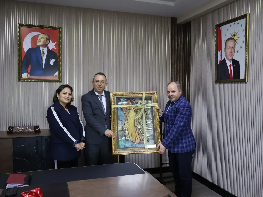 Ziyarette ayrıca Usta Öğretici Perihan Çelik tarafından hazırlanan tablo, Müdür Murtaza Alan’a takdim edildi.