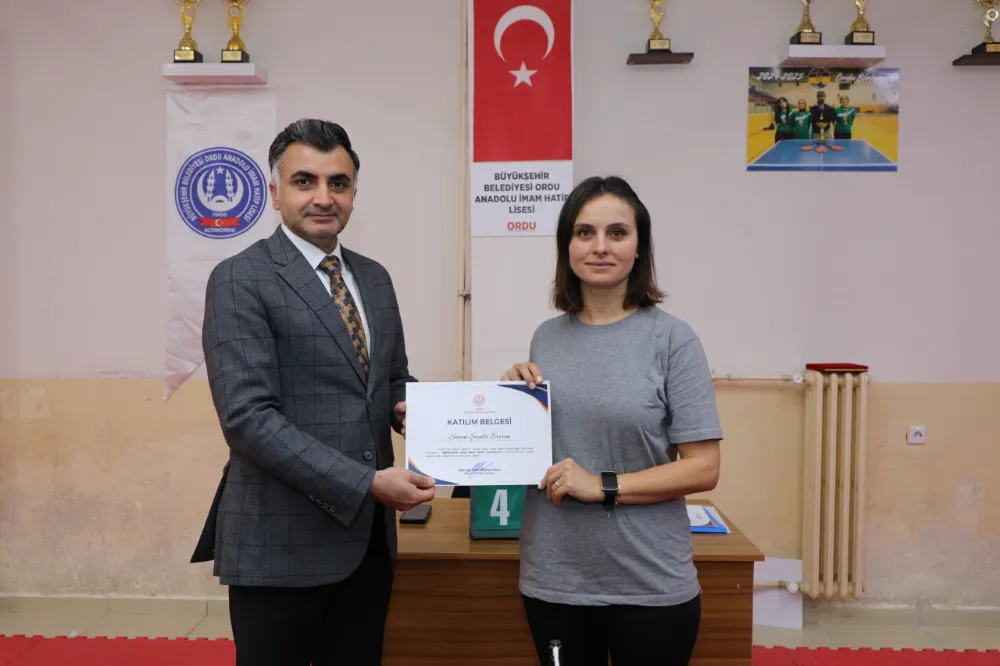 Müsabakalar sonunda dereceye giren öğretmen ve takımlara ödül ve belgeleri, Müdür Vargeloğlu tarafından takdim edildi.