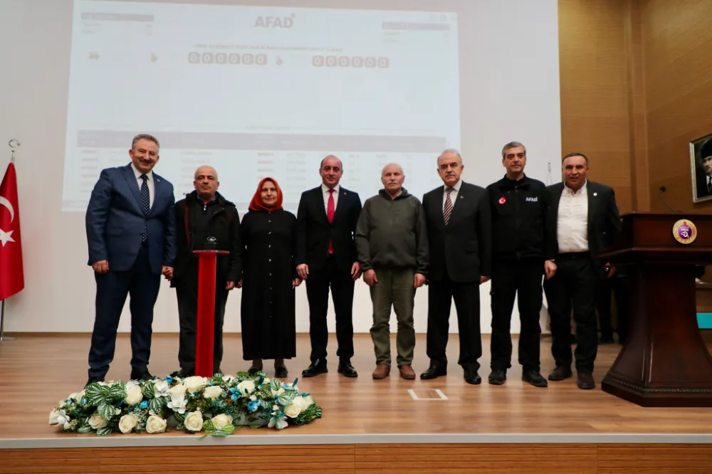 Tören, noter huzurunda gerçekleştirilen kura çekimi sonrası hak sahibi afetzedelere anahtar teslimi ile sona erdi.