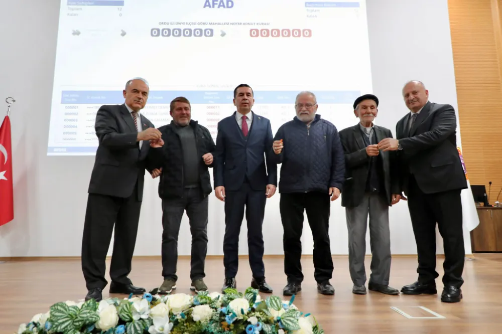 Törende, il genelinde meydana gelen afetler nedeniyle yapımı tamamlanan; Aybastı ilçesi Çakırlı Mahallesi’nde 36, Gölköy ilçesi Sarıca Mahallesi’nde 30, Ünye ilçesi Göbü Mahallesi’nde 12 ve Ünye ilçesi Yunus Emre Mahallesi’nde 6 olmak üzere toplam 84 afet konutunun noter huzurunda kura çekimi yapıldı.