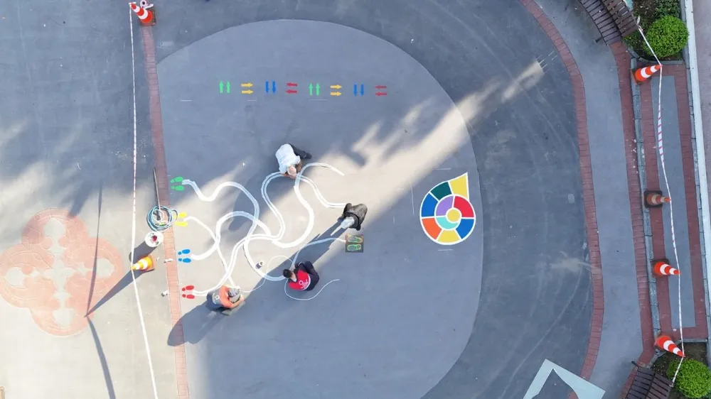 Birçok ilçede cadde ve sokakların zeminleri seksek, labirent, salyangozla sayı öğrenme ve yön değiştirme gibi eğitici oyun figürleriyle renklendiriliyor.