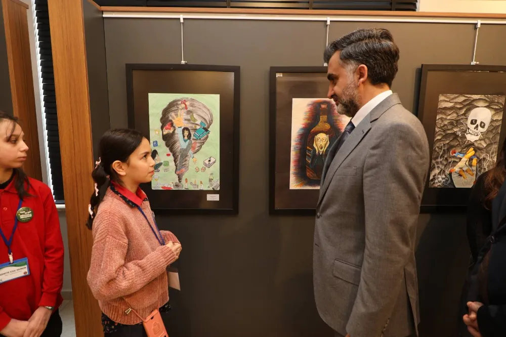 Öğrencilerin bağımlılıkla mücadele konusundaki duyarlılıklarını yansıttıkları eserler, katılımcılardan büyük beğeni topladı.