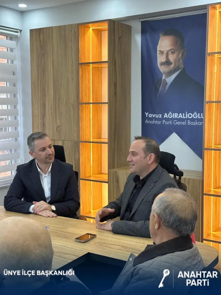 Anahtar Parti Ünye İlçe Başkanı Serkan Güney, Yuvam Sigorta Aracılık Hizmetleri işletmecileri ve ORSAD Başkan Yardımcıları Mithat Yağal ile Cihat Yağal’ı ilçe başkanlığında ağırladıklarını belirterek, gerçekleştirilen verimli görüşme için teşekkür etti.