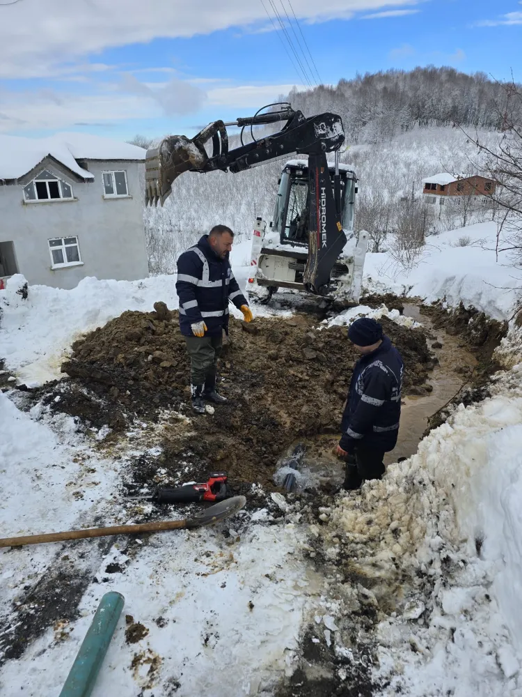 İçme suyunun kesintisiz şekilde sağlanması için gece gündüz görev yapan ekipler, kar yağışı sonrası meydana gelen içme suyu ve kanalizasyon arızalarına zaman kaybetmeden müdahale ediyor. Zorlu hava ve arazi şartlarına rağmen ihbarlara kısa sürede ulaşan ekipler, arızaları yerinde gidererek vatandaşların mağduriyet yaşamasının önüne geçiyor.