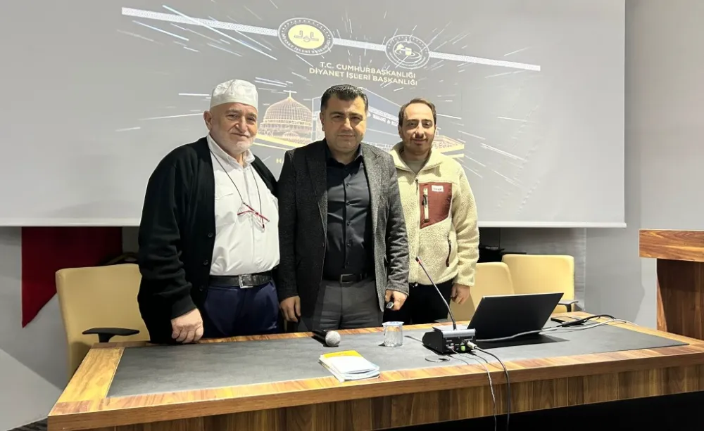 Seminer kapsamında İlçe Müftülüğü Şube Müdürü Metin Kaçmaz, Umre ibadetinin manevi yönleri ile kutsal topraklarda ziyaret edilecek mekânlar hakkında katılımcılara bilgilendirme yaptı.