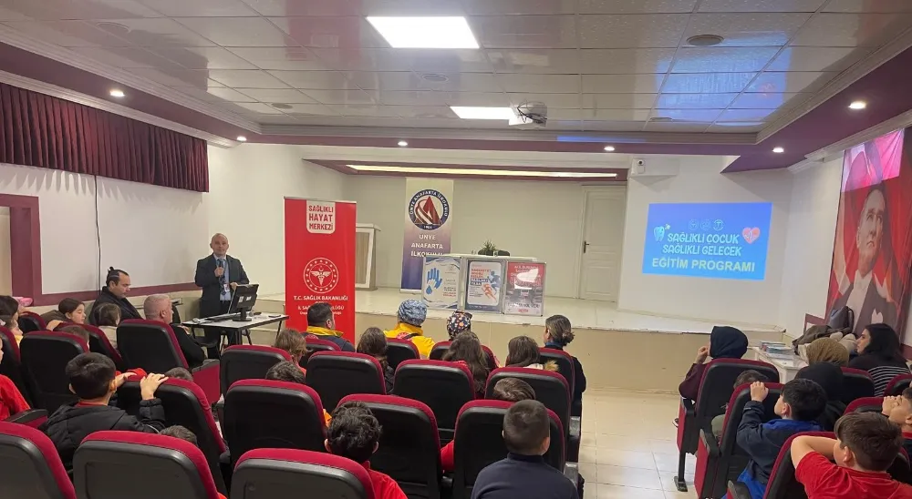 Ünye’de “Sağlıklı Çocuk, Sağlıklı Gelecek” programı kapsamında Ünye Anafarta İlkokulu öğrencilerine yönelik düzenlenen sağlık eğitiminde hijyen, bulaşıcı hastalıklardan korunma, aile hekimliği ve ağız-diş sağlığı konularında bilgilendirme yapıldı.