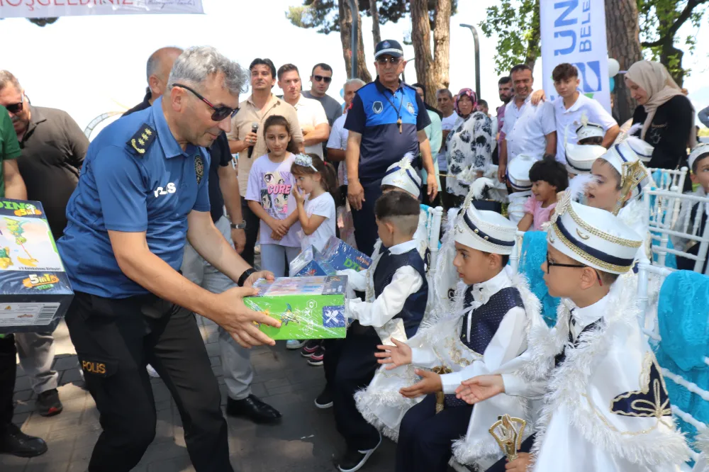 Ünye Belediyesi tarafından organize edilen hayırsever iş insanlarının destekleriyle gerçekleştirilen etkinlikte sünnet olan çocuklar için çeşitli etkinlikler ve sürprizler hazırlandı. Ailelerin ve vatandaşların yoğun ilgi gösterdiği organizasyon renkli görüntülere sahne oldu. Çocukların mutluluğu yüzlerine yansıdı.