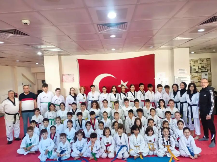 Ünye Reis Spor Kulübü’ne kayıtlı 90 sporcu Türkiye Tekvando Federasyonu 2023 yılı 2. Dönem renkli kuşak terfi sınavı için ter döktü.