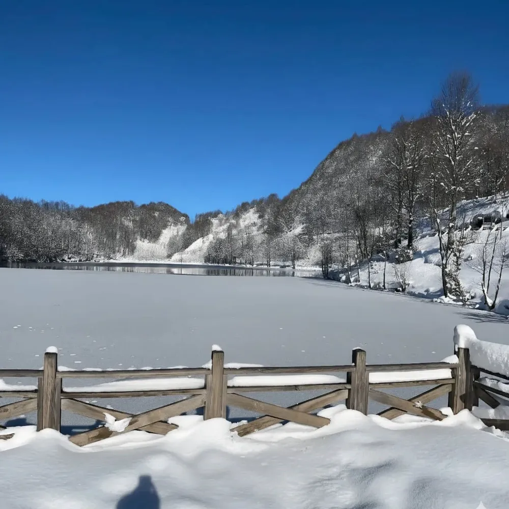 Karla kaplanan göl yüzeyi ve çevresindeki ormanlık alanlar, doğayla iç içe manzaralar oluşturdu. Beyaz örtüyle bütünleşen Ulugöl, özellikle doğaseverler ve fotoğraf tutkunları için eşsiz görüntüler sundu.