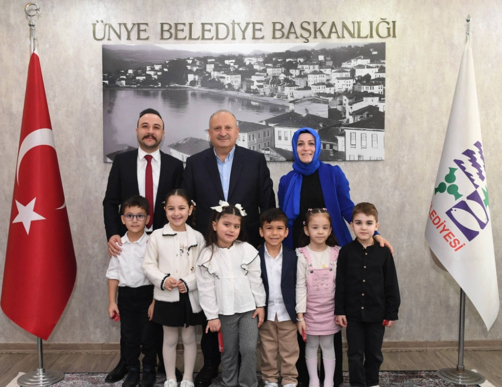 "Ünye Anaokulu’na kazandırdığımız çocuk parkını tamamlayarak evlatlarımızın hizmetine sunduk. Bugün de minik öğrencilerimiz teşekkür ziyareti için bizleri ziyaret ettiler. Onları belediyemizde ağırlamanın mutluluğunu yaşadık. Çocuklarımızın enerjisi bizlere büyük moral oldu. Nazik ziyaretleri dolayısıyla Okul Müdürü Yavuz Karagöz’e ve kıymetli yavrularımıza teşekkür ediyorum. Geleceğimizin teminatı çocuklarımız için daha güzel ve güvenli alanlar oluşturmaya kararlılıkla devam edeceğiz."