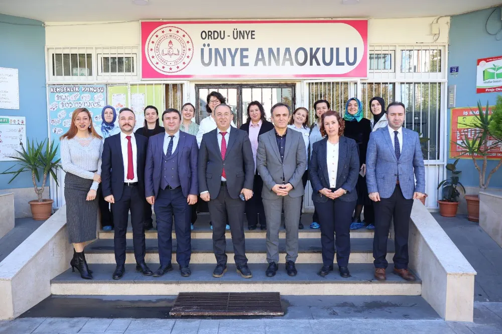 Ünye İlçe Millî Eğitim Müdürü Murtaza Alan, İlçe Millî Eğitim Şube Müdürleri ile birlikte Ünye Anaokulu’nu ziyaret etti.