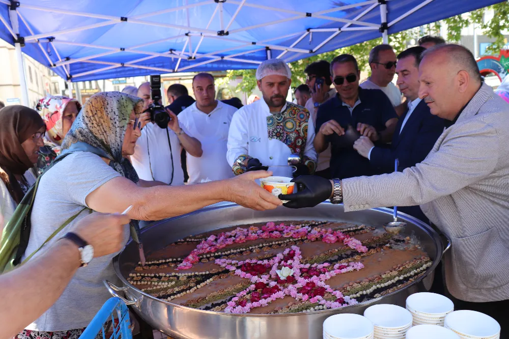 “Aşurenin içinde nasıl ki bir çok çeşitli ürün varsa şehrin de bu birlikteliğini ve beraberliğini sağlayan zenginliğin ve farklılığının da bir arada yaşatılmasının çok kıymetli, birlik beraberliğin tesis edilmesinin de çok önemli olduğunu belirtmek istiyorum. Aynı şekilde şehirlerimiz taşlardan, yollardan, asfaltlardan ibaret değil. Aynı şekilde bu yolları, parkları, asfaltları güzelleştiren, bunların arasına serpiştirilen muhabbetlerimiz ve selamlarımız var. Bunların güzelliğini hep birlikte yaşatsın. Allah’ım birlik ve beraberliğimizi daim eylesin.”