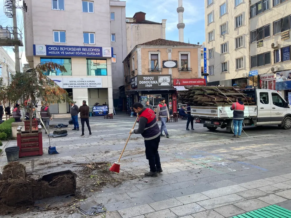 Ünye’nin sembol alanları arasında bulunan Dönerçeşme Meydanı’ndaki kent mobilyaları, Ordu Büyükşehir Belediyesi Parklar ve Yeşil Alanlar Dairesi Başkanlığı ekiplerince söküldü. Meydanda daha modern ve kullanışlı bir görünüm oluşturulması amacıyla yürütülen çalışmada, oturma grupları ve çevre donatıları yenilenecek.