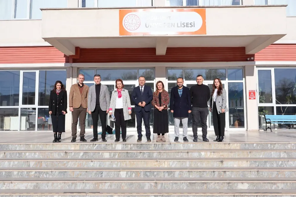 Ünye Fen Lisesi ziyareti kapsamında okul idarecileri ve öğretmenlerle bir araya gelen İlçe Milli Eğitim Müdürü Murtaza Alan ve Şube Müdürü Asiye Fidan, akademik çalışmalar ile okulda yürütülen projelere ilişkin değerlendirmelerde bulundu.