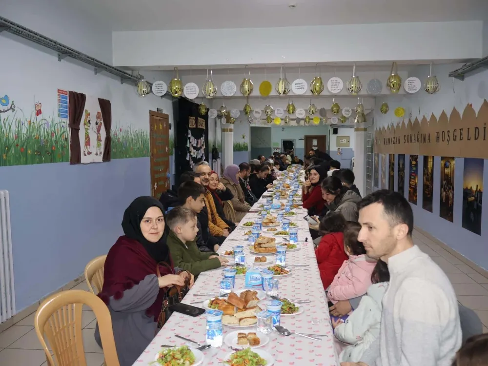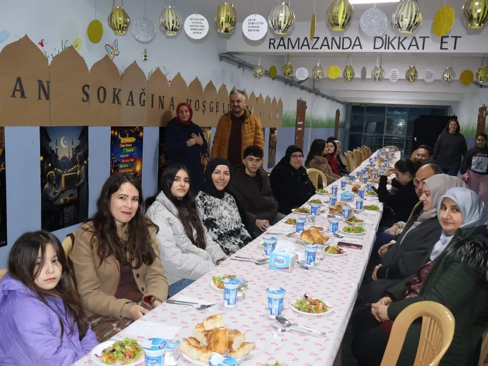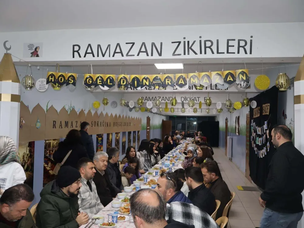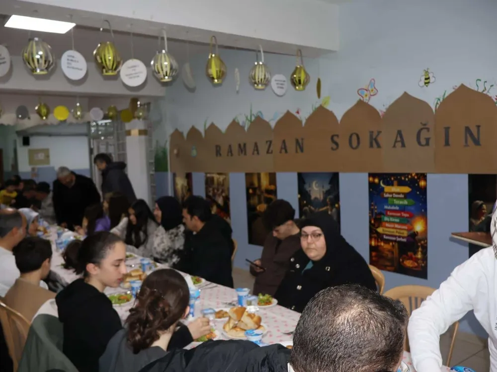Okul koridorunda oluşturulan ve manevi atmosferiyle dikkat çeken "Ramazan Sokağı" etkinliğinde, katılımcılar iftar saatinin bereketini paylaştı. Öğretmenlerin aileleriyle katıldığı, çocukların ise oyun ve tebessümlerle renk kattığı program, farklı kuşakları aynı değerler etrafında buluşturarak toplumsal bağların güçlenmesine katkı sağladı.