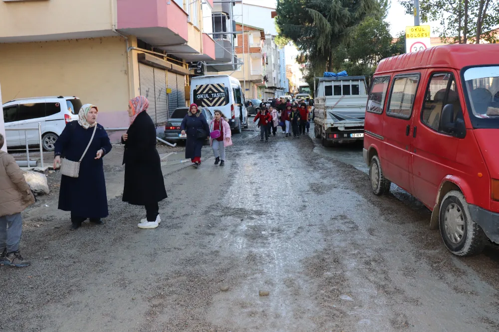 Veliler, çocuklarını her gün çamur içinde okula getirip götürmek zorunda kaldıklarını ifade etti.