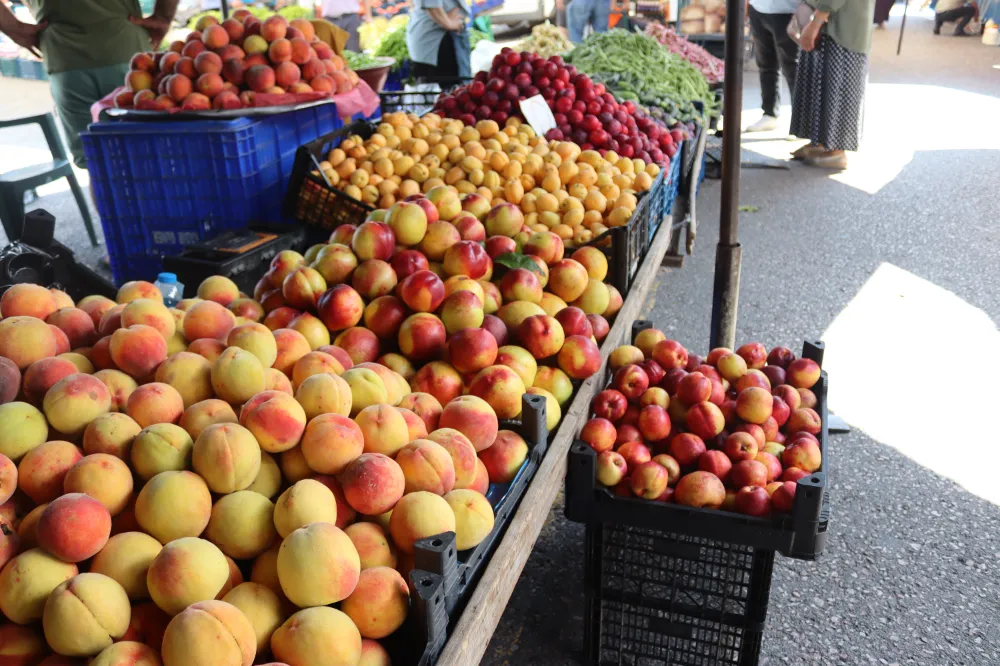 Pazarda fiyatlar ise şöyle; domates kg 25 tl, salatalık kg 25 tl, üzüm kg 60 tl, kavun tane 50 tl, karpuz tane 100 tl, fasulye kg 70tl, şeftali kg 100 tl, nektari kg 100 TL, patlıcan kg 25 tl, biber kg 25 tl, muz kg 80 tl, kabak kg 30 tl, mantar kg 200 tl, dağ çileği kg 150 tl, kırmızı erik kg 100 tl.