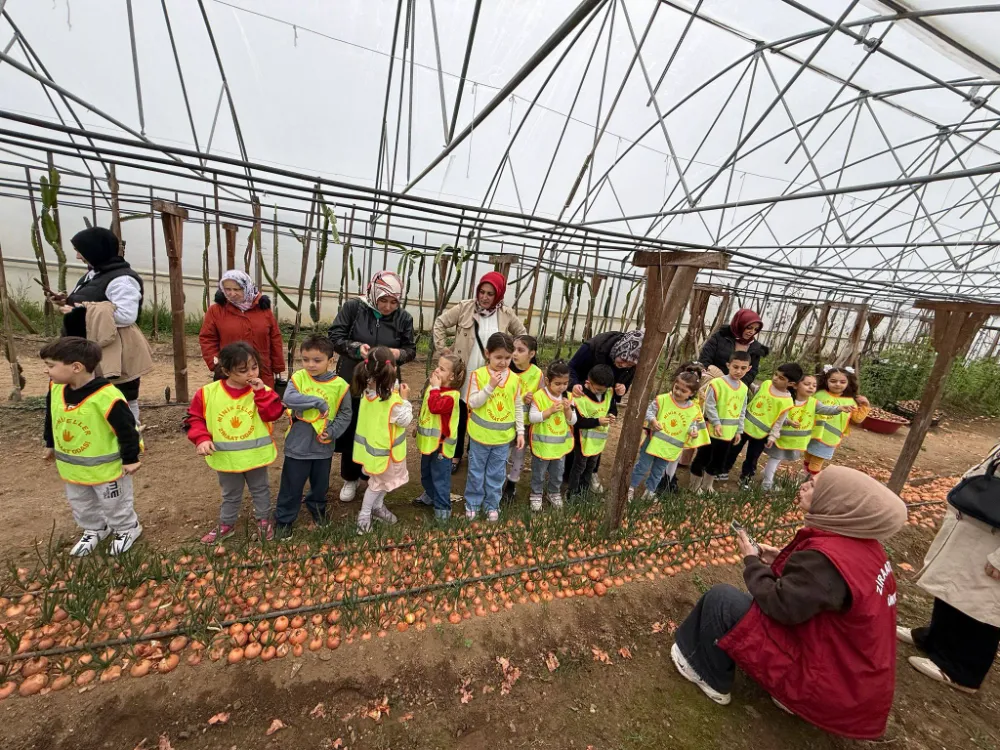 Görevliler eşliğinde gerçekleştirilen etkinlikte öğrenciler, toprağa dokunmanın ve üretimin ilk adımlarını atmanın heyecanını yaşadı.