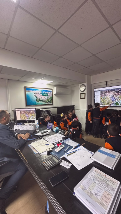 Öğrenciler, Ünye Belediyesi’ni ziyaret ederek İmar Müdürü İrfan Pelit eşliğinde belediyenin farklı hizmet birimlerini yakından tanıdı. İmar birimi başta olmak üzere çeşitli müdürlükleri gezen öğrenciler, belediyenin görev ve sorumluluklarını, şehir planlaması ve işleyişini yerinde gözlemleme imkânı buldu. Bu ziyaret sayesinde yerel yönetimlerin toplum yaşamındaki rolünü örneklerle öğrenme fırsatı yakalandı.