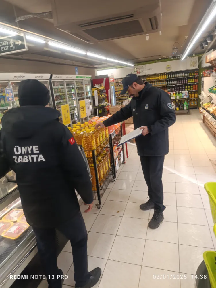 “Ünye Belediyesi Zabıta Müdürlüğümüz Personelleri İşletme Denetim ve Kontrol Faaliyetleri kapsamında; 36 fırın hijyen, gramaj ve tezgah düzeni denetimi, 30 okul kantini sağlık, etiket, hijyen, gramaj ve düzen uygunluğu denetimi, 37 market ruhsat uygunluğu, etiket, gramaj ve hijyen denetimi, 378 çevre kirliliği ve atık malzeme şikayet kontrol denetimi, 15 kuaför işletmesinde fiyat etiketi denetimi yapıldı. 418 işletme ve şahıs kaynaklı işgal denetimi yapıldı.”